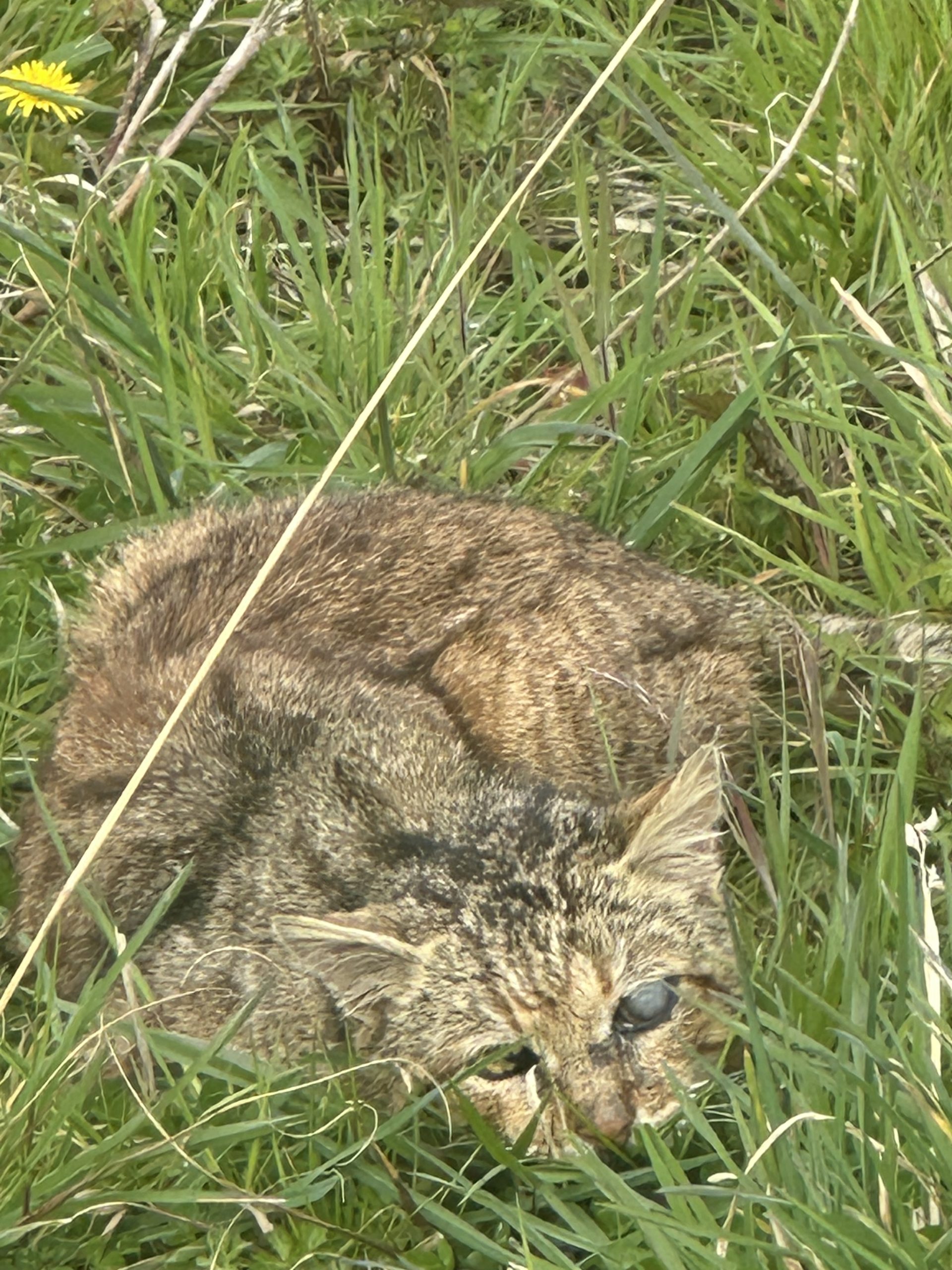 Chat âgé avec un oeil aveugle vu sur le bord de la route vers 16h00 ce jour (dimanche 23 mars 2025) en bas de Marsolan. Nous sommes intervenu pour le sortir de la route et tenter de vérifier s’il était identifié.
